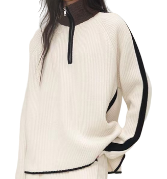 OEM & ODM stile di design minimalista due pezzi Top di lana da donna Semi collo alto maglione lavorato a maglia primavera inverno autunno Pullover